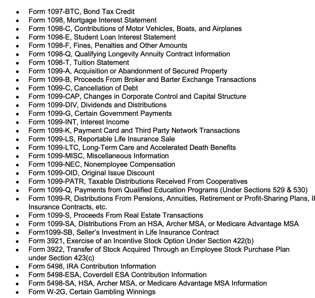 米国で申告義務のある人は、だいたい1月 - 4月の間に確定申告(Tax Return)を行う。この際、所得申告に関する数々の書類を提出する。例えば、雑所得がある場合は 1099-MISC、ギャンブルの収益は W-2G といった具合だ。