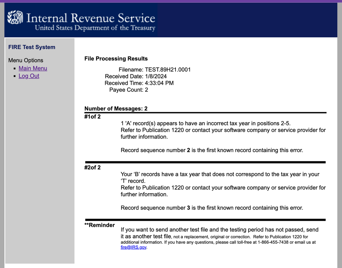 ここまで読んで、まぁ正しく仕様を理解してデータをASCIIフォーマットにおこし、かつ内容にミスなく提出することは非常に困難だとみなさんも気づいたと思う。IRSも同感のようで、なんとテスト環境を用意してくれている。